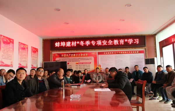 為宣傳貫徹安建建材第四次安委會會議精神,切實(shí)落實(shí)冬季安全生產(chǎn)管理工作,蚌埠建材于11月16日下午在公司一樓會議室組織召開安建建材第四次安委會會議精神宣貫暨冬季專項(xiàng)安全教育培訓(xùn)會,蚌埠建材全體員工參與此次會議。
