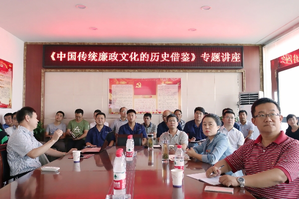 為加強(qiáng)公司黨風(fēng)廉政建設(shè),打造公司廉政文化,營造風(fēng)清氣正的文化氛圍,9月14日下午,蚌埠建材在一樓會議室開展了廉政教育專題講座。會上邀請了蚌埠市市委黨校黨史黨建教研部副教授、蚌埠市哲學(xué)學(xué)會副秘書長崔北軍,以《中國傳統(tǒng)廉政文化的歷史借鑒》為題為大家授課,公司領(lǐng)導(dǎo)班子、全體黨員、入黨積極分子以及遞交入黨申請書人員參加了此次講座,安徽三建蚌埠公司時代廣場超高層項目聯(lián)合黨支部部分黨員也一同參與了此次講座。