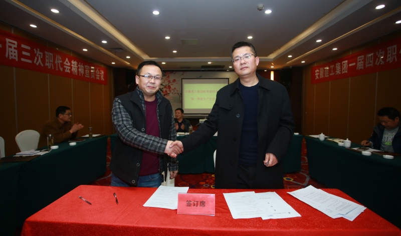 會議首先對安徽建工集團一屆四次職代會精神及安建建材一屆三次職代會精神進行了宣貫。蚌埠建材黨支部書記、總經(jīng)理陶良敬重點解讀了《蚌埠建材2018年總經(jīng)理工作報告》內(nèi)容,并與各中心負責(zé)人簽訂了《年度安全目標(biāo)責(zé)任書》。