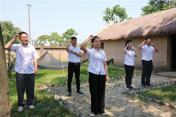 活動伊始,大家來到渡江戰(zhàn)役總前委孫家圩子舊址紀(jì)念館前,面對鮮艷的中國共產(chǎn)黨黨旗,全體黨員一起重溫入黨誓詞,再一次接受入黨誓詞的洗禮。