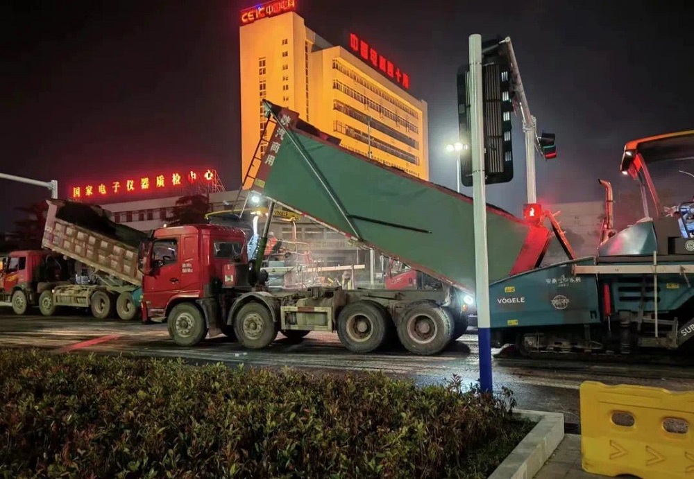 奮戰(zhàn)21小時(shí)!嘉和建筑蚌埠片區(qū)項(xiàng)目部完成15000平方瀝青攤鋪