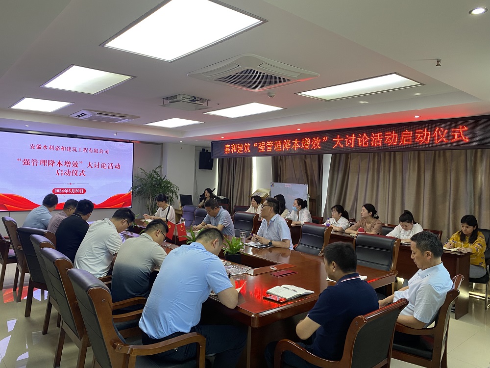 為提升精細(xì)化管理水平,實(shí)現(xiàn)提質(zhì)增效目標(biāo),營(yíng)造大討論活動(dòng)氛圍,5月20日下午,嘉和建筑在和順大廈15樓會(huì)議室召開(kāi)“強(qiáng)管理降本增效”大討論活動(dòng)啟動(dòng)儀式,嘉和建筑領(lǐng)導(dǎo)班子、機(jī)關(guān)全體人員、蚌項(xiàng)目負(fù)責(zé)人以及核算管理人員參加啟動(dòng)儀式。