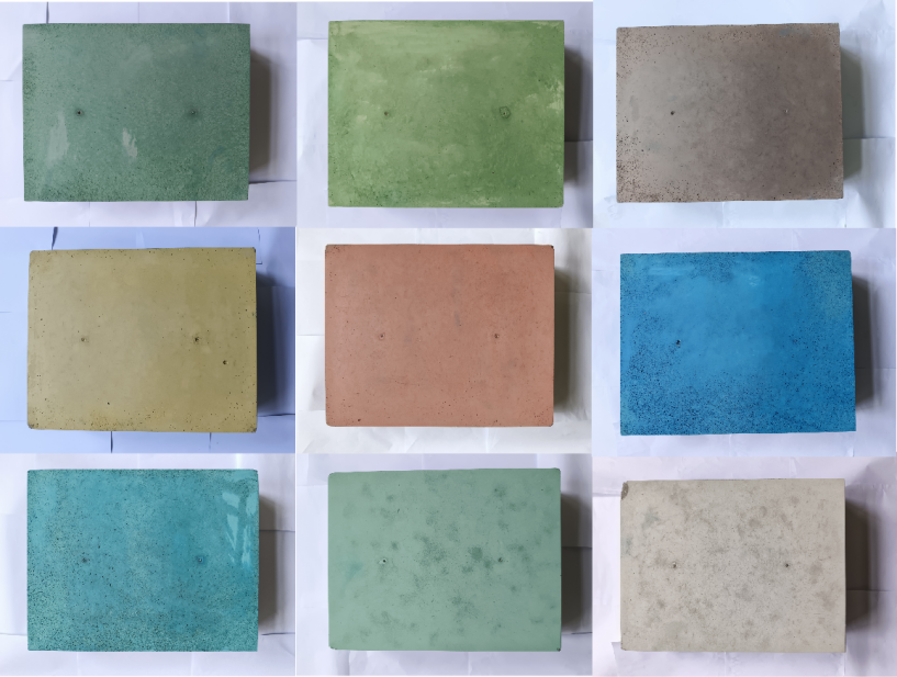 為貫徹落實(shí)公司一屆一次職代會(huì)會(huì)議精神,建材產(chǎn)業(yè)研究院積極圍繞新型建筑材料開(kāi)展相關(guān)技術(shù)探索,反復(fù)的試配攻關(guān),不斷優(yōu)化調(diào)整配合比,進(jìn)行試驗(yàn)、檢測(cè)、分析、改進(jìn),最終調(diào)配出多套高耐久、高強(qiáng)、工作性優(yōu)異,涵蓋牛油果色、白色、天空藍(lán)、巧克力色等十余種顏色彩色混凝土配合比。