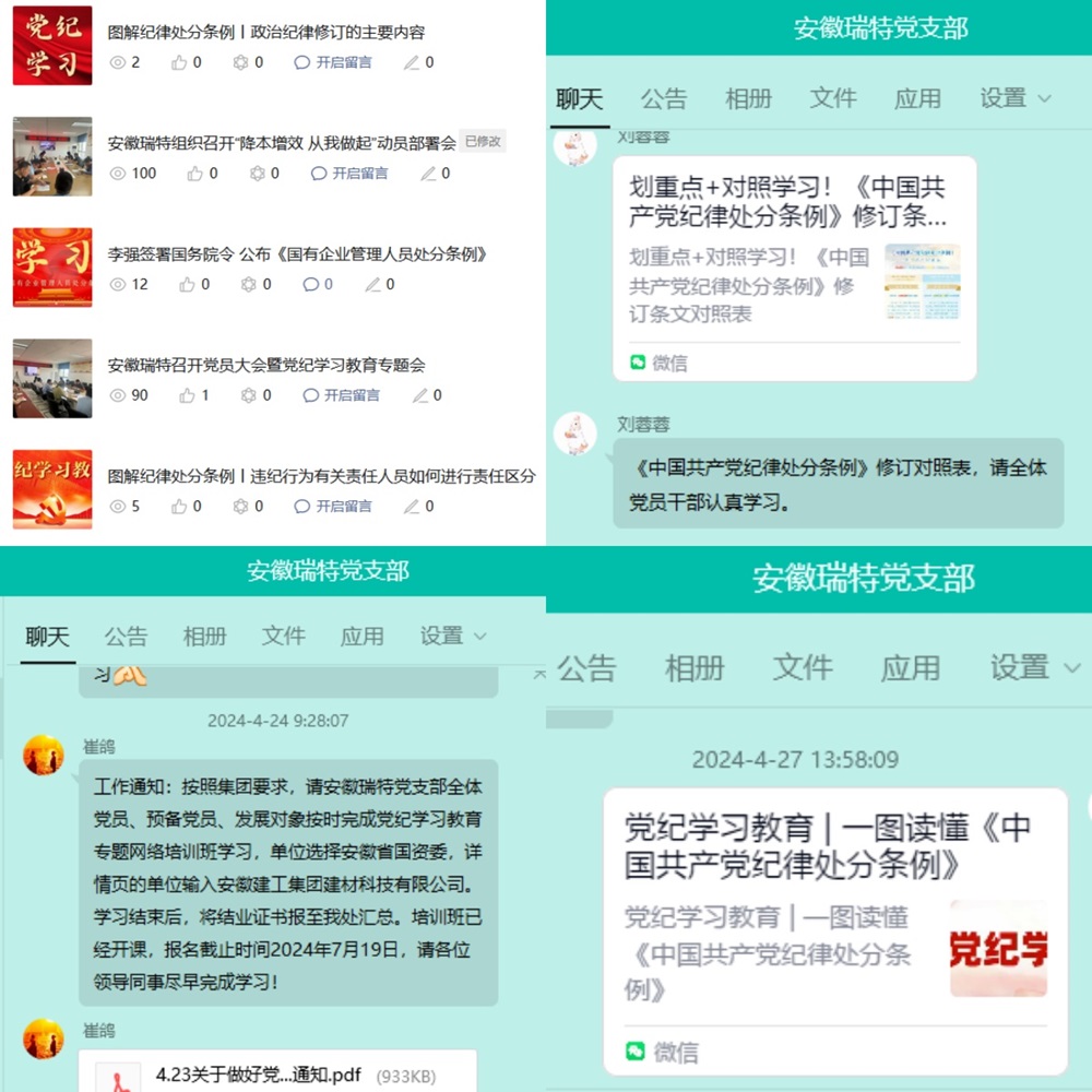 黨紀(jì)學(xué)習(xí)教育開展以來,安徽瑞特認(rèn)真貫徹落實上級黨委決策部署,把開展黨紀(jì)學(xué)習(xí)教育作為重要政治任務(wù),加強統(tǒng)籌謀劃,精心組織實施,緊密結(jié)合實際,豐富學(xué)習(xí)形式,努力使黨紀(jì)學(xué)習(xí)教育內(nèi)化于心、外化于行。