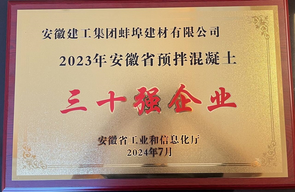 【喜報】蚌埠建材榮獲2023年安徽省預(yù)拌混凝土企業(yè)30強(qiáng)稱號
