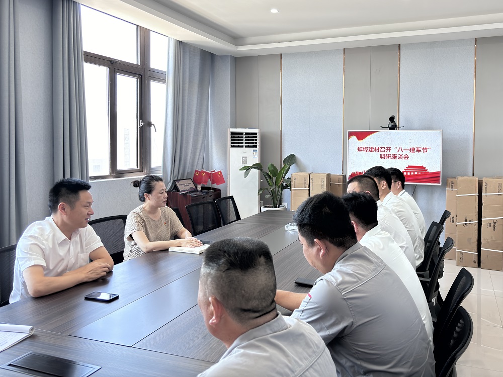 7月31日上午,蚌埠建材召開(kāi)“八一”建軍節(jié)調(diào)研座談會(huì)。公司黨支部書(shū)記、工會(huì)主席沙薇莉主持會(huì)議,公司總經(jīng)理助理李粹永、退伍軍人代表參加會(huì)議。