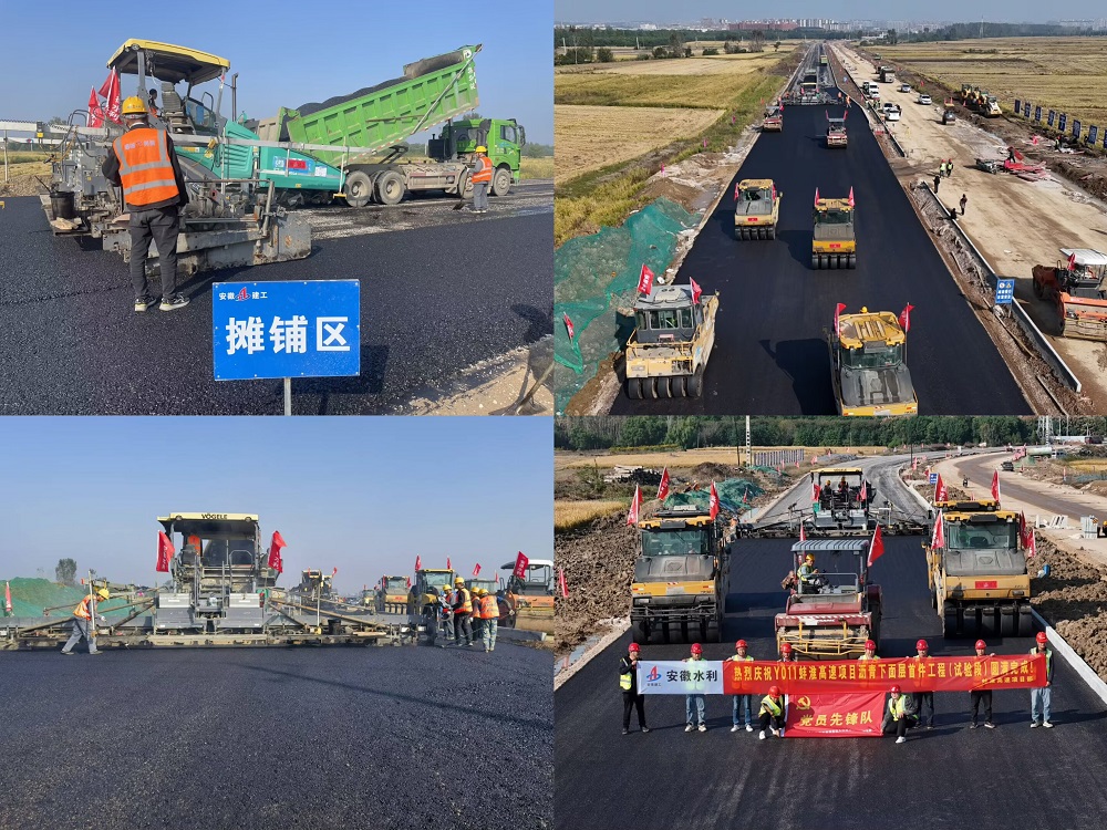 10月23日,嘉和建材科技園參建的Y011蚌淮高速項目瀝青下面層試驗段順利完成攤鋪,正式拉開路面瀝青施工序幕。
