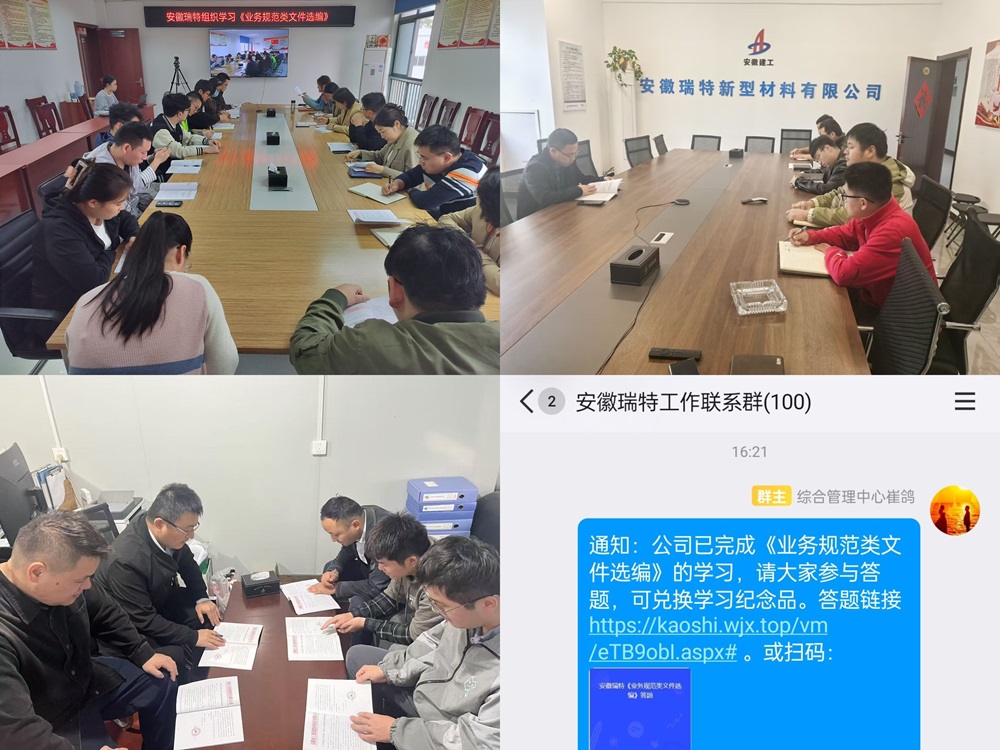 為進一步提升業(yè)務(wù)工作的規(guī)范性,強化員工對業(yè)務(wù)規(guī)范類文件的學(xué)習(xí)和運用,安徽瑞特組織開展了學(xué)習(xí)《業(yè)務(wù)規(guī)范類文件選編》系列活動。