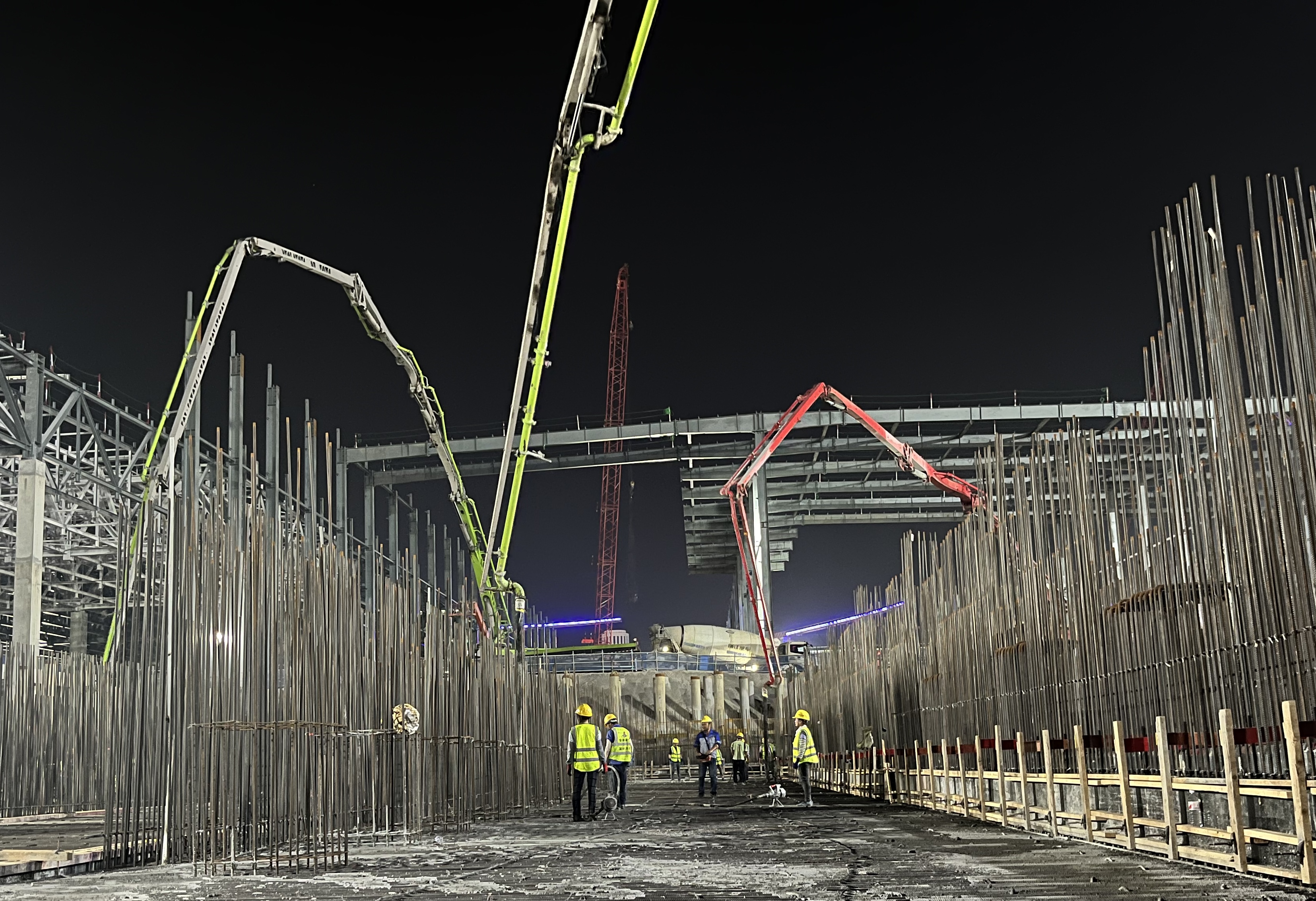 為保障項目順利推進(jìn),建工建材克服了夏季高溫、車輛管制、暴雨路滑等不利因素,通過優(yōu)化運(yùn)輸路線、增加運(yùn)輸車輛、加強(qiáng)現(xiàn)場協(xié)調(diào)等方式,有效保障了混凝土的連續(xù)供應(yīng)。尤其在四季度,累計供應(yīng)量超過20萬方,投入攪拌車145輛,泵送設(shè)備25臺,召開專項保供會議10余次,切實為項目建設(shè)贏得了寶貴時間。