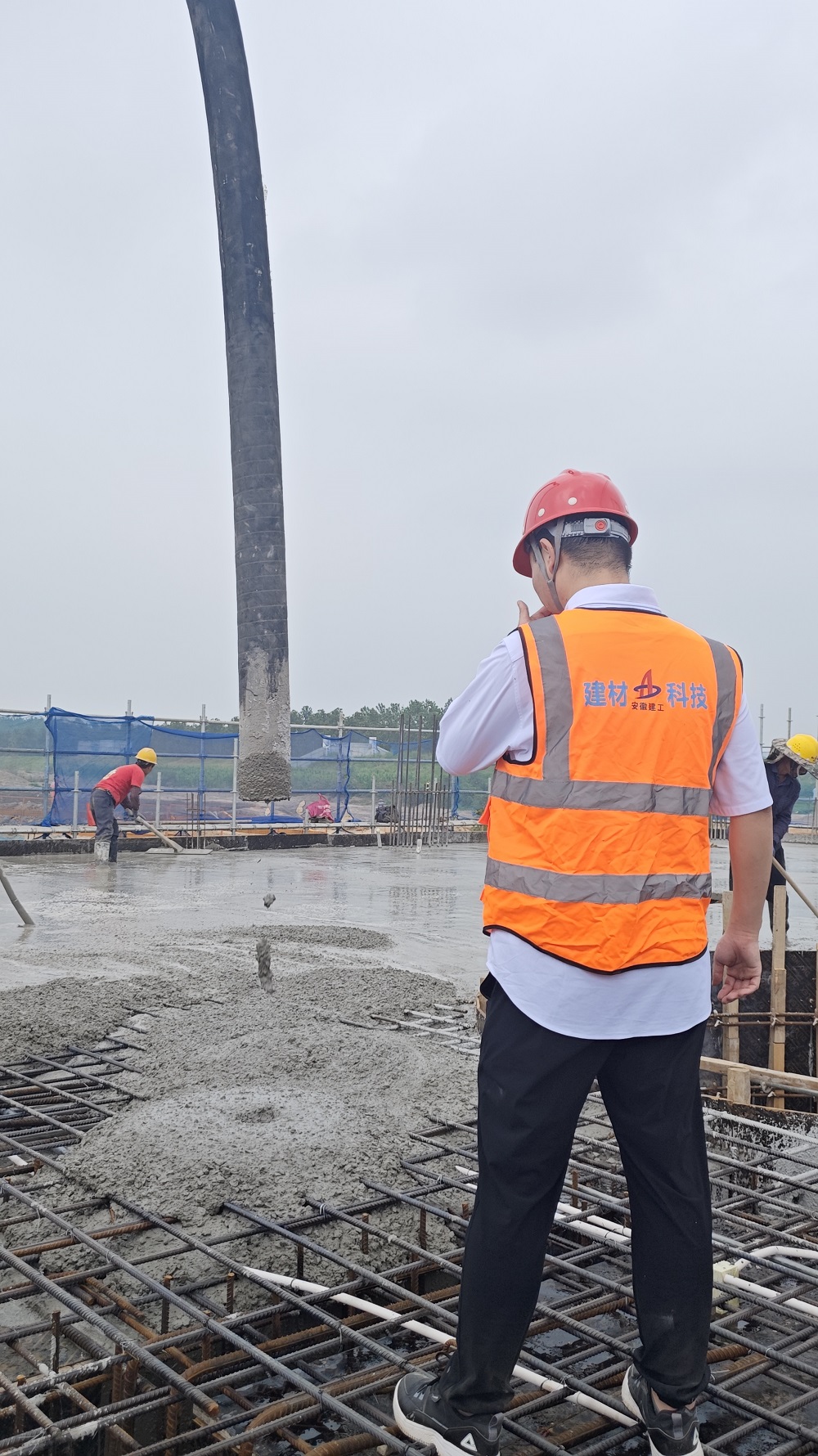 淮上站生產(chǎn)組長楊國威頭頂烈日巡查,既檢查設(shè)備作業(yè)安全性,又密切關(guān)注倉面澆筑情況,用細(xì)致守護(hù)現(xiàn)場安全與施工質(zhì)量。
