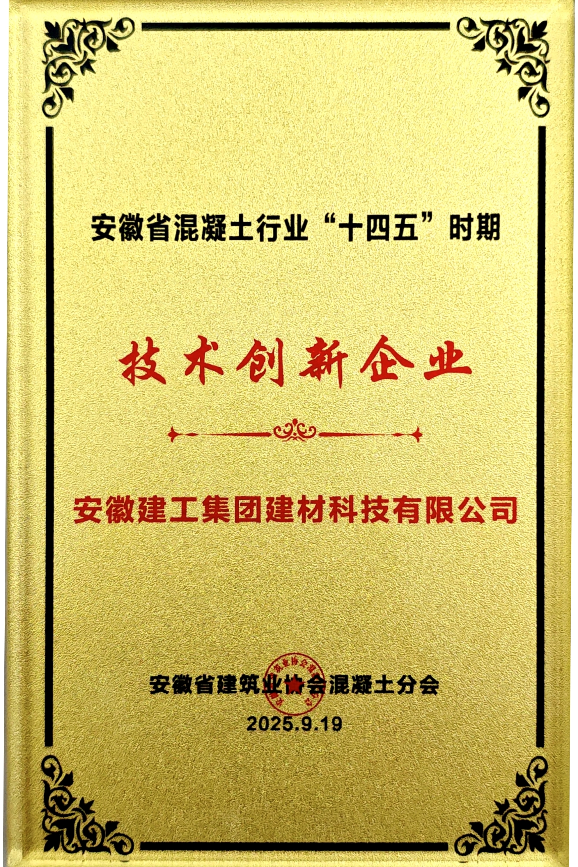 建工建材榮獲安徽省混凝土行業(yè)“十四五”時期“技術(shù)創(chuàng)新企業(yè)”稱號