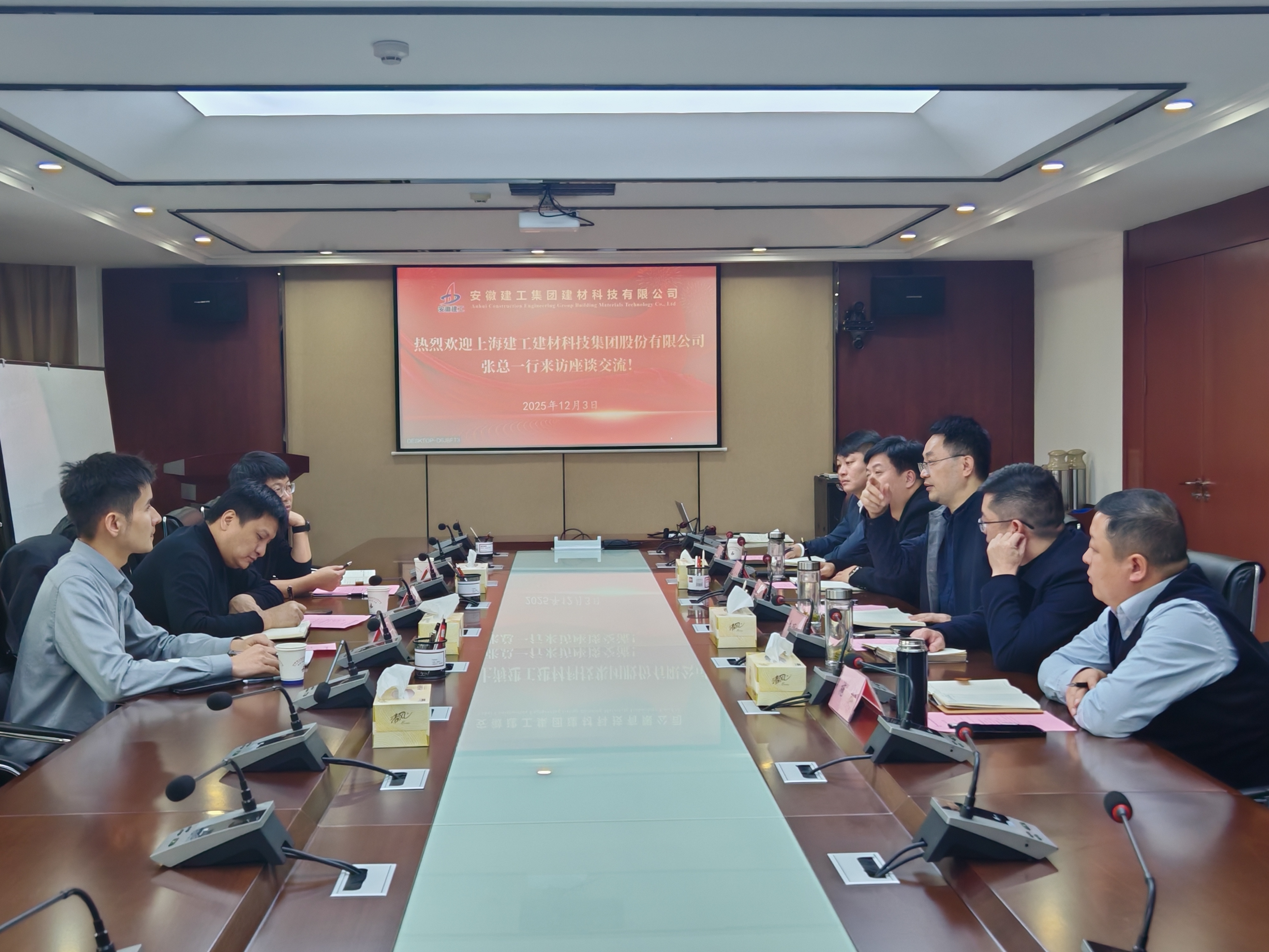 上海建材科技集團(tuán)材一公司總經(jīng)理曹楓,建工建材黨委委員、副總經(jīng)理朱明歡,雙方有關(guān)負(fù)責(zé)同志參加座談。