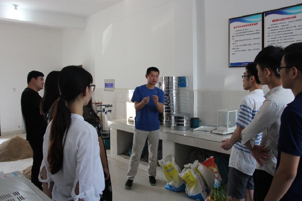 質(zhì)量管理中心員工帶領(lǐng)實(shí)習(xí)生現(xiàn)場參觀了膠凝材料室、集料室、試拌室、力學(xué)室和養(yǎng)護(hù)室,詳細(xì)介紹了質(zhì)量管理過程中使用的儀器設(shè)備與試驗(yàn)方法,就水泥膠砂強(qiáng)度、砂石篩分析以及混凝土抗壓強(qiáng)度等試驗(yàn)進(jìn)行了演示。還系統(tǒng)介紹了預(yù)拌混凝土與干粉砂漿的生產(chǎn)工藝流程,對各個(gè)環(huán)節(jié)的質(zhì)量控制作了充分講解,并針對實(shí)習(xí)生提出的問題進(jìn)行了逐一解答。