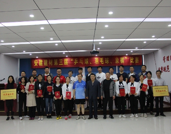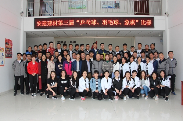 為慶?!拔逡弧眲趧?dòng)節(jié)、“五四”青年節(jié),豐富職工文化生活,推動(dòng)企業(yè)文化建設(shè),安建建材工會(huì)于4月26日在安徽瑞特運(yùn)動(dòng)館舉辦了安建建材第三屆“羽毛球、乒乓球、象棋”比賽。安建建材工會(huì)副主席陳堅(jiān)出席動(dòng)員會(huì)并致開幕詞。
